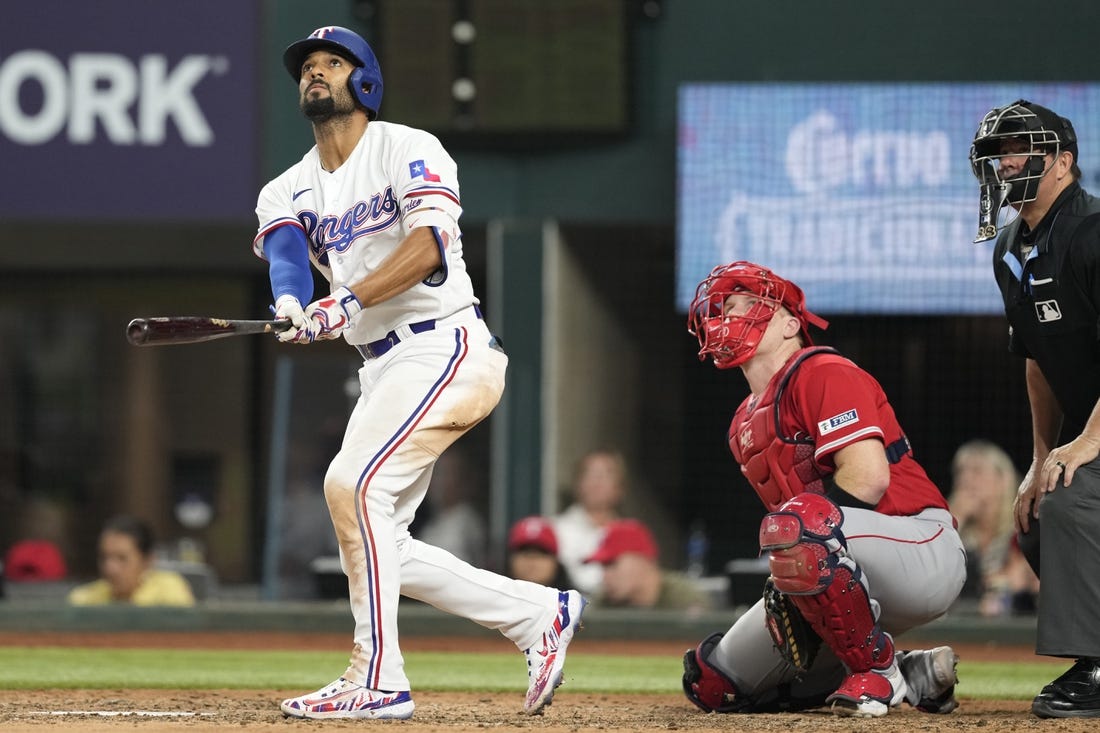The Rangers took control of the game with two outs in the seventh. Semien broke a 1-1 tie by turning on a 1-1 changeup from Angels reliever Jimmy Herget (1-3) and hitting a two-run shot off the left field foul pole.