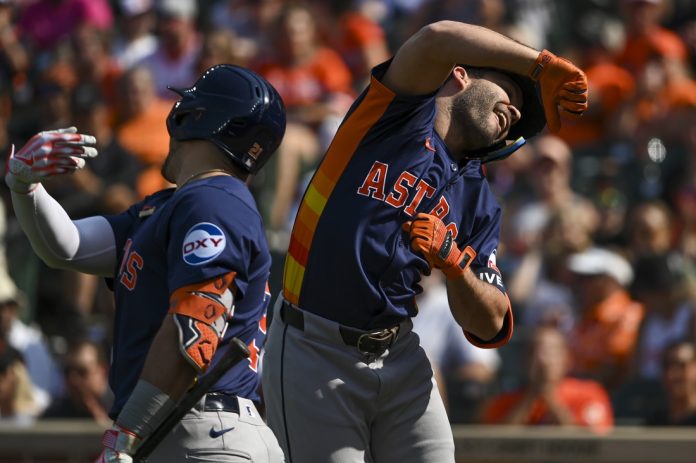 Houston’s Alex Bregman and Yainer Diaz hit back-to-back home runs in the seventh inning to lift the Astros to a 6-3 win over the host Baltimore Orioles, allowing them to salvage a split of a four-game series.