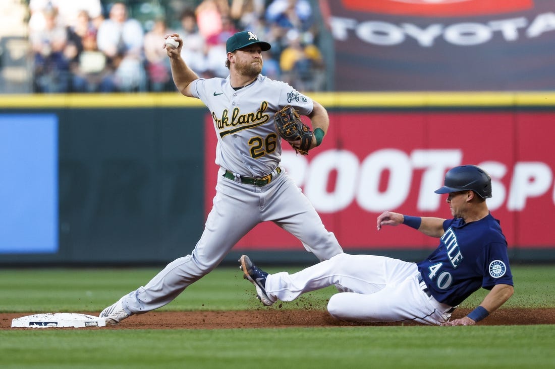 The A’s made it 2-0 in the sixth. With two outs, Sheldon Neuse doubled into the left field corner and Kemp lined an RBI single to center.