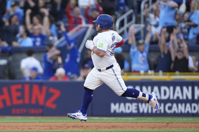 Toronto’s Bo Bichette had an RBI single in the first inning and wound up 1-for-3 with a walk to extend his hit streak to 10 games. He is 17-for-39 (.436) with five doubles and six RBIs in that span.
