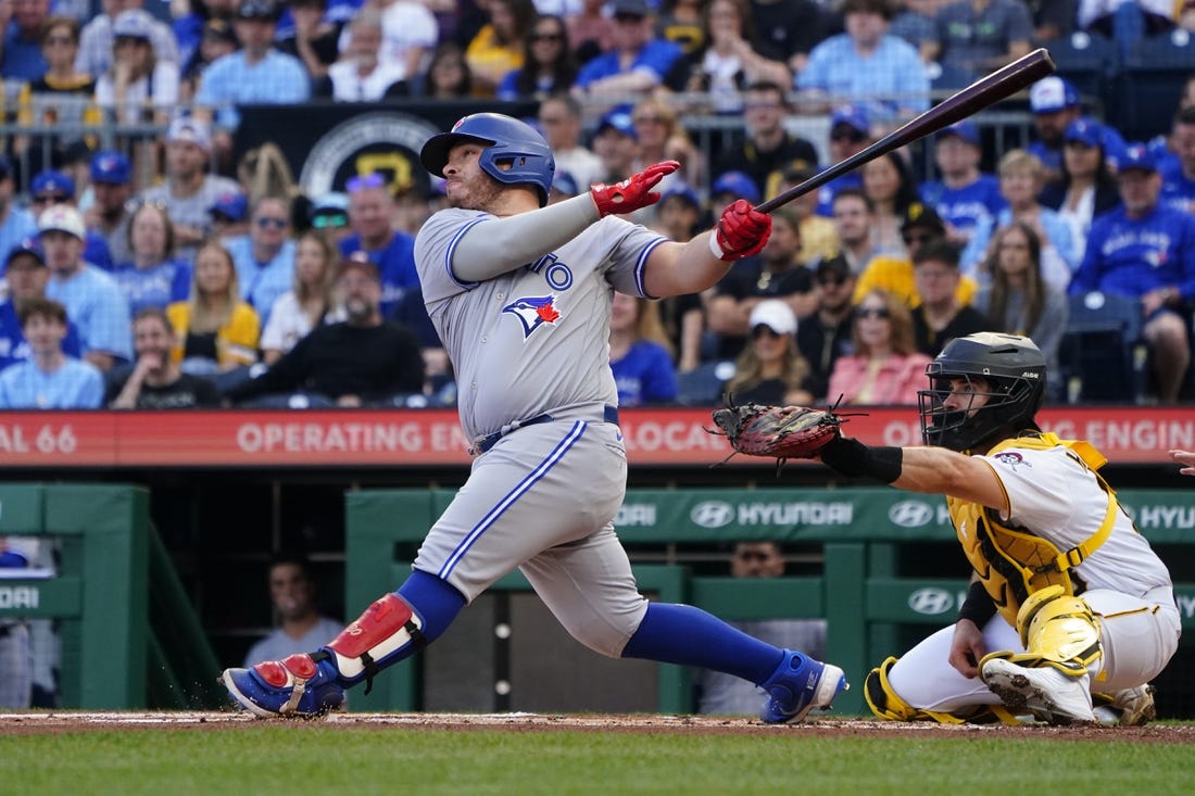 George Springer, the game’s first batter, singled. Bo Bichette walked on four pitches. Varsho drove in Springer with a base hit for a 1-0 lead. Bichette went to third on Matt Chapman’s flyout and, after Whit Merrifield struck out, scored along with Varsho on Belt’s double. Kirk drove in Belt with a double to make it 4-0.