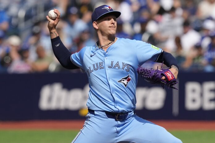 Daulton Varsho was given credit for an infield hit when Fulmer fielded a squibber down the first-base line that was about to roll foul and continued to third on Fulmer’s wild throw to first. Guerrero doubled home Varsho and scored on Joey Loperfido’s double to make it 2-0.