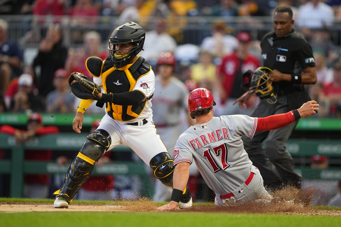 After two hitless innings from Pittsburgh starter Mitch Keller (0-5), Tyler Naquin opened the third with a sharp line-drive double off the right field wall. Kyle Farmer followed with a run-scoring double to right, tying the game at 1-1. Farmer later scored on a TJ Friedl sacrifice fly to left to give the Reds a 2-1 lead.