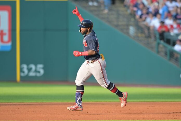 Ronald Acuna Jr. followed with a single and then stole his 40th base of the season before scoring on a single by Ozzie Albies for a 2-0 lead.