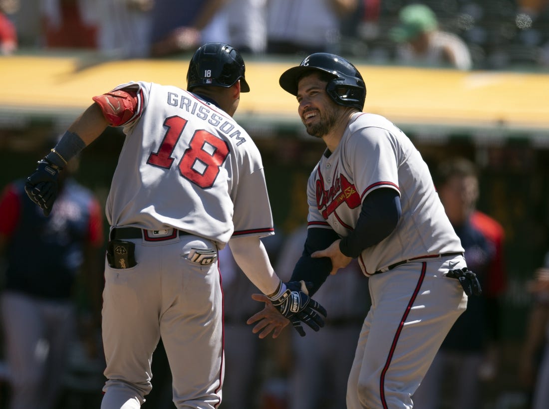 Grissom drew Atlanta even when he homered following a Travis d’Arnaud hit batsman to open the fifth, ending Oakland rookie Ken Waldichuk’s shutout bid. The homer was Grissom’s fifth.