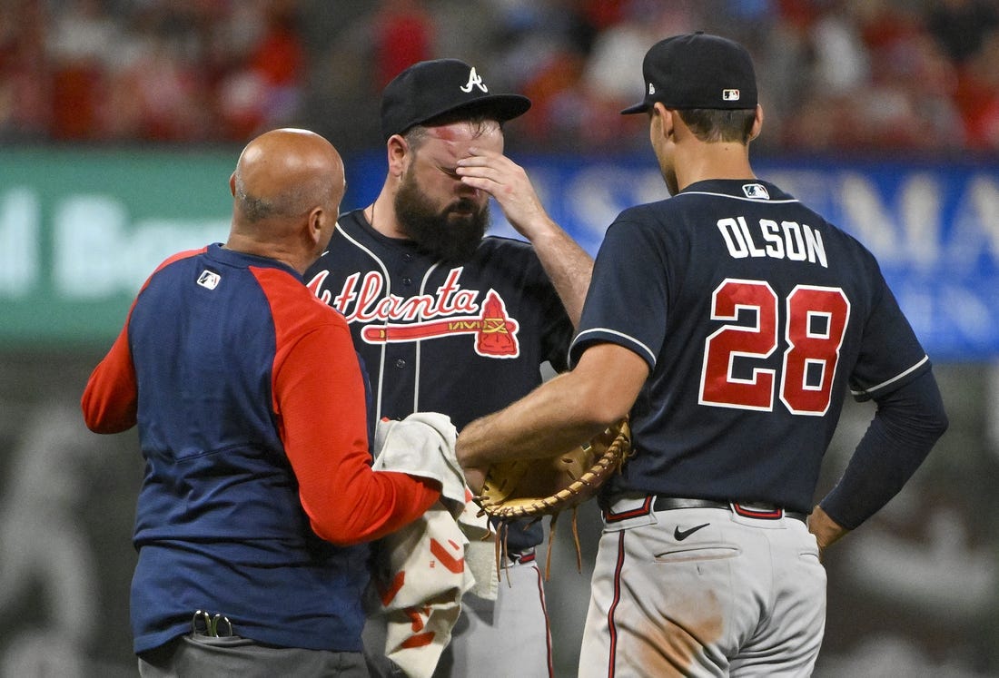 “He’s aware and everything, but he’s going to have to go to the hospital and get some tests,” Braves manager Brian Snitker said after his team’s 11-4 win. “It’s always scary when you see somebody get hit in the head, the face. That’s probably the most sickening thing you can witness in a game.”