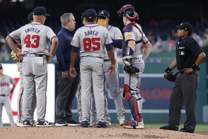Lopez was removed from Tuesday’s 12-0 win over the host Washington Nationals after just one inning. He threw 25 pitches, including 16 strikes, but his fastball velocity was slightly lower than average.