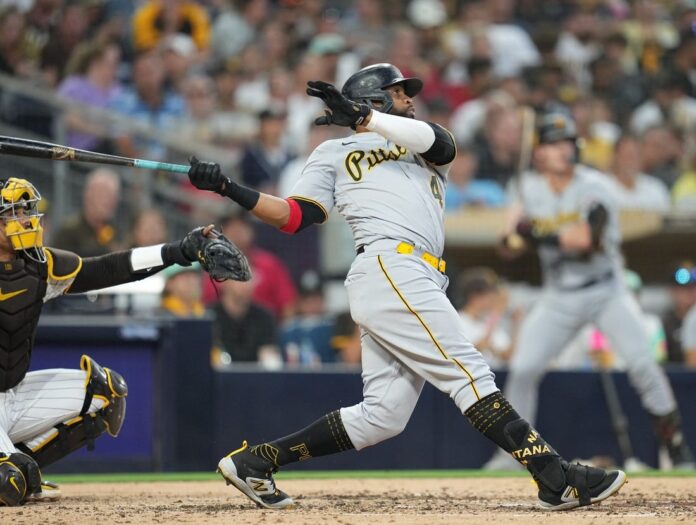 Santana batted .235 with 12 homers and 53 RBIs in 94 games for the Pirates. He hit three of the homers in the just-concluded three-game series against the San Diego Padres.