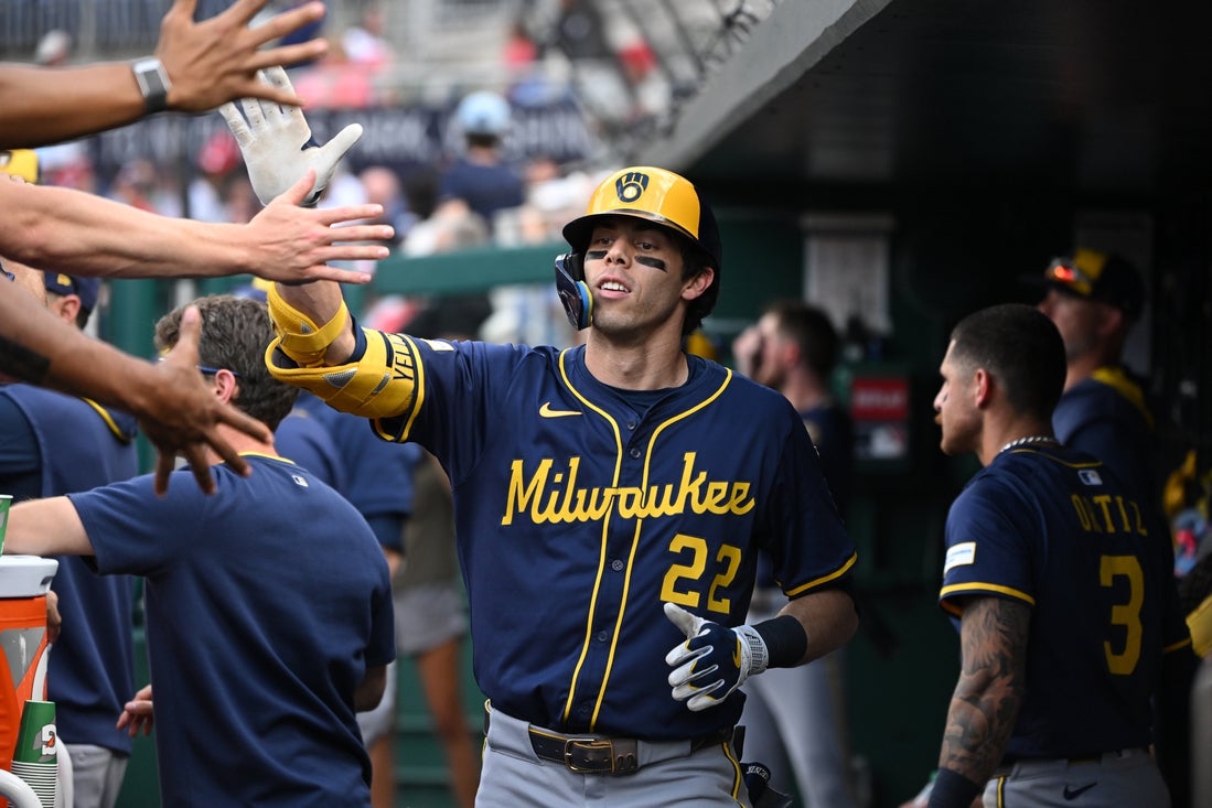 After pounding Washington pitchers for 16 runs and 25 hits on Friday night, the Brewers picked up where they left off. Frelick opened the game with a double and William Contreras walked. With one out, Yelich, Isaac Collins and Blake Perkins singled to make it 3-0.