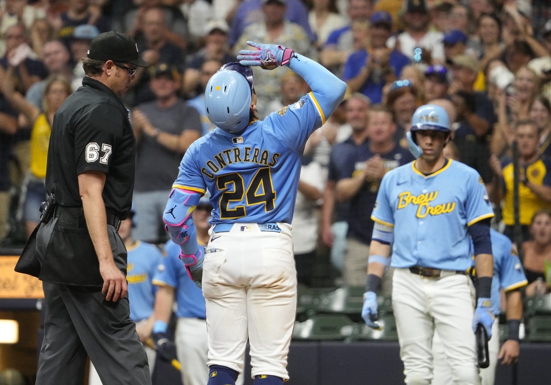 William Contreras hit an insurance two-run homer immediately after his inning-ending flyout was negated by a pitch clock violation Saturday night for the host Milwaukee Brewers, who beat the skidding New York Mets 7-4.