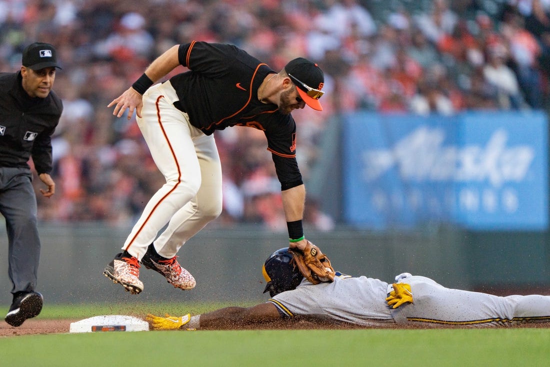 Such was the case again Saturday, when the Brewers’ Willy Adames reached second with no outs in the ninth on an infield single and an errant pickoff by Giants reliever Dominic Leone, trailing 2-1. But Adames got no farther, with Leone getting a popout, a groundout and a game-ending strikeout with the potential tying run in scoring position.