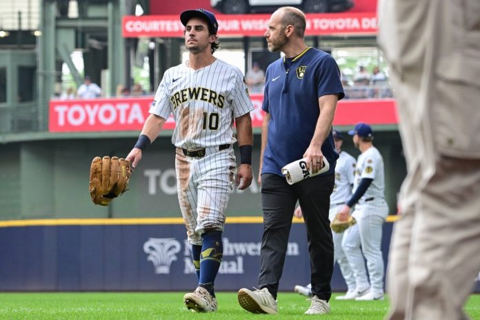 MLB: Brewers OF Sal Frelick exits game with hamstring injury