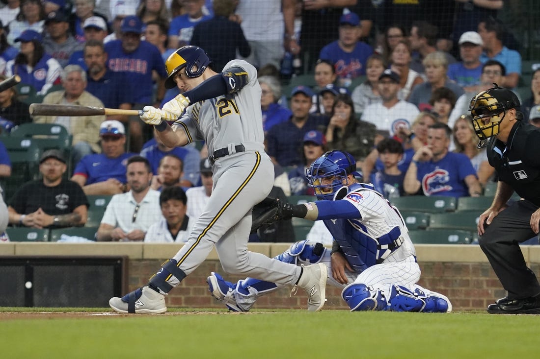 Three pitches into the game, Yelich went deep into the left-center-field bleachers for his 17th home run of the season. Two batters later, rookie Sal Frelick singled, went to third on Willy Adames’ infield single that featured a throwing error by Cubs shortstop Dansby Swanson and scored via Rowdy Tellez’s sacrifice fly.
