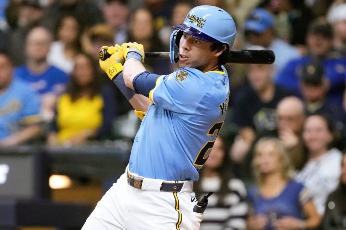 The Brewers scored twice in the seventh on Yelich’s RBI groundout and a run-scoring single by William Contreras, who extended his hitting streak to 11 games.