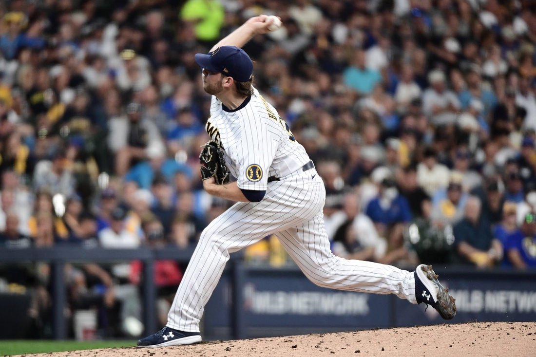 Brewers starter Corbin Burnes, the majors’ regular-season ERA leader, allowed two hits in six scoreless innings before being lifted for a pinch hitter. He struck out six and walked three in his 91-pitch outing.