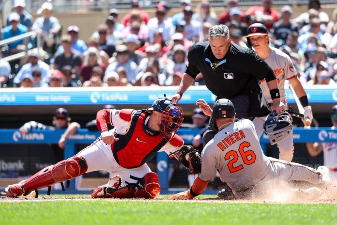 Brooks Lee hit a two-run double with two outs in the eighth inning to send the Minnesota Twins to a 5-2 victory against the Baltimore Orioles on Thursday afternoon in Minneapolis.
