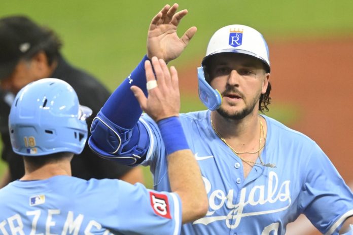 The Royals went up 2-0 in the first on Vinnie Pasquantino’s two-run homer off Gavin Williams, which followed a walk to Mike Yastrzemski. The long ball was the 30th of the year for Pasquantino, who joined George Brett, John Mayberry and Mike Moustakas as the only left-handed batters in Royals history to reach the figure in a season.