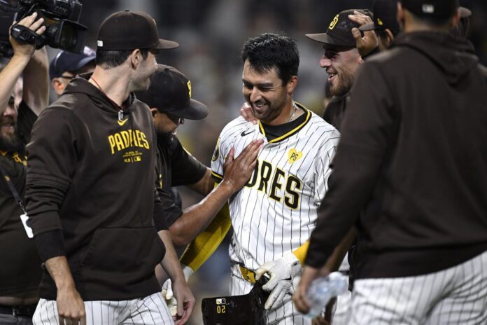 After failing to break out the brooms against Milwaukee, Arizona, Atlanta, Miami and Kansas City this season, the Padres are getting another shot thanks to Kyle Higashioka. The catcher hit a leadoff homer in the bottom of the ninth on Tuesday, lifting San Diego to a 4-3 win in front of 41,945 fans.