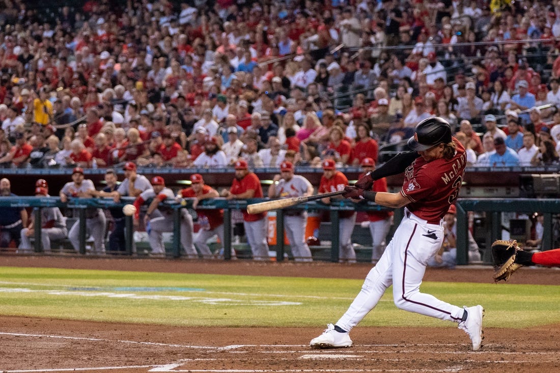 The Diamondbacks tied the game 3-3 in the second inning. Stone Garrett hit a leadoff single, Josh Rojas walked and Jake McCarthy hit a one-out RBI single.
