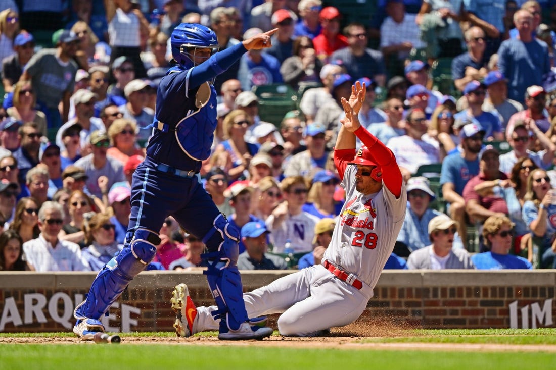 Chicago pulled even on Frank Schwindel’s run-scoring single in the bottom of the third before St. Louis moved ahead for good with five runs in the fourth.
