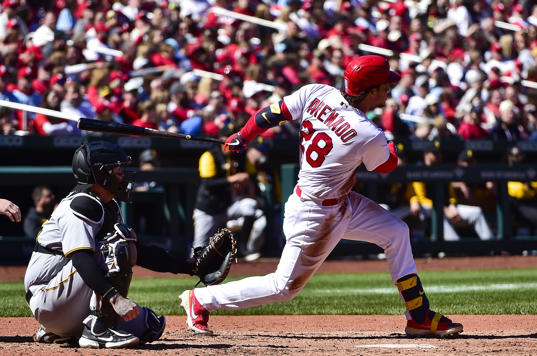 Nolan Arenado has paced the Cardinals’ attack in the first two games: 5-for-8 with three doubles, a homer and five RBIs. Paul Goldschmidt is 2-for-5 with five walks and four runs scored.