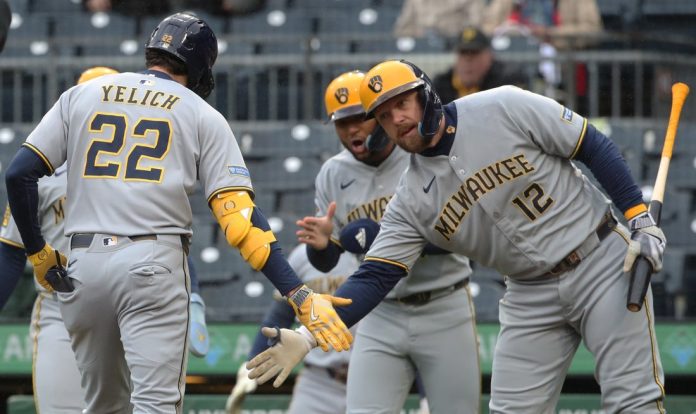Yelich’s three-run blast in the first inning off Pirates rookie starter Mike Burrows (0-1) set the tone for the Brewers’ fourth win in their past five games. Burrows, who made his first career major league start and season debut, allowed four runs on four hits (two home runs) and two walks while striking out three over five innings.