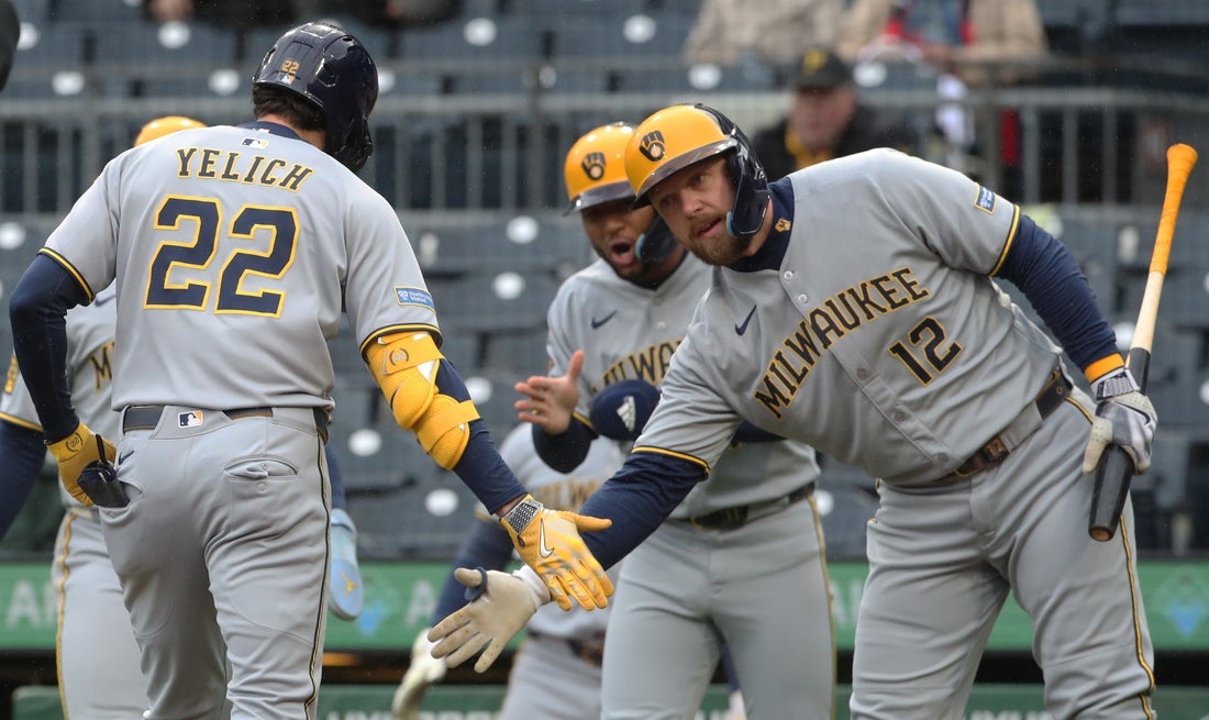 Christian Yelich hit a pair of home runs and finished with four RBIs to help the Milwaukee Brewers open a four-game series with an 8-5 win over the host Pittsburgh Pirates on Thursday night.