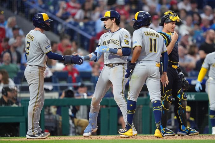 Christian Yelich belted a three-run home run and a solo shot to highlight the Milwaukee Brewers’ 6-2 victory over the host Philadelphia Phillies in the series opener on Friday.