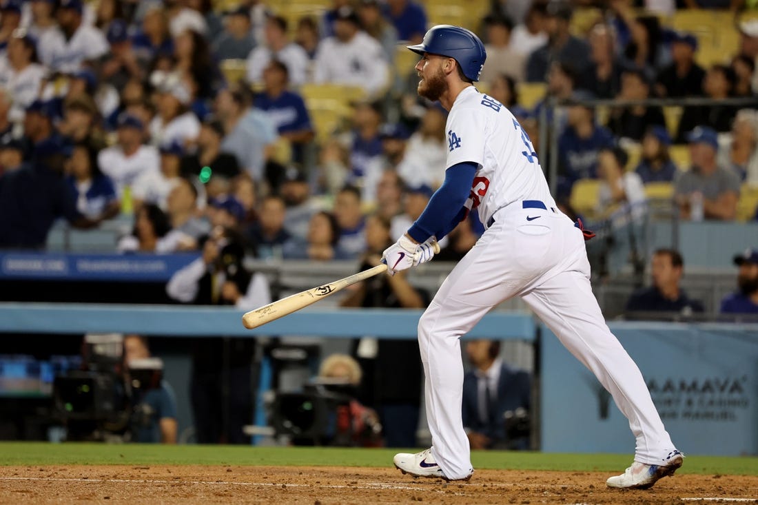 Bellinger’s three-run shot came in an eight-run fourth inning. With no outs, following singles from Gavin Lux and Taylor, Bellinger cleared the wall in right field, his 18th homer of the season. It was his first home run since Aug. 21, ending a drought of 30 games.