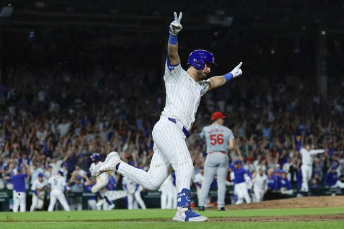 Cody Bellinger, who doubled earlier, cut the lead to 4-3 with one out when he lined his 11th homer to left-center. One out later, Nico Hoerner bounced a single to center and then stole second. Swanson then tied it with a double to left to set the stage for Tauchman’s opposite-field game-winner.