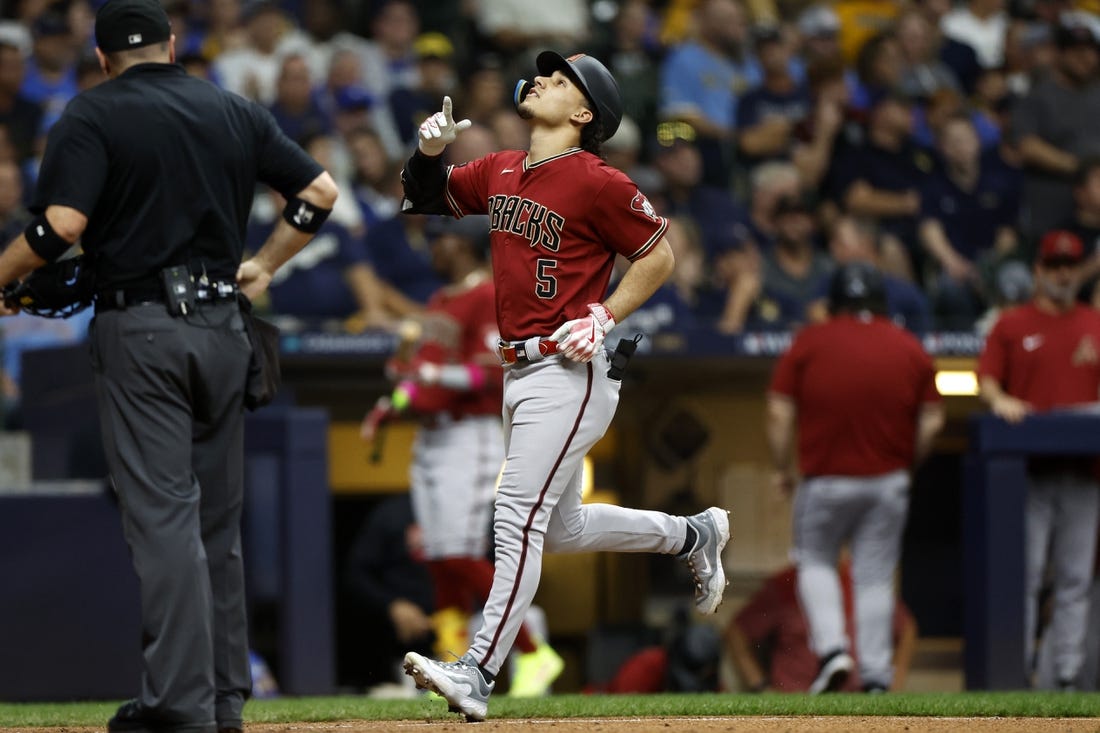 Things unraveled quickly for Brewers starter Freddy Peralta, who did not allow a hit until Alek Thomas’ two-out solo homer in the fifth inning that pulled Arizona within 2-1.