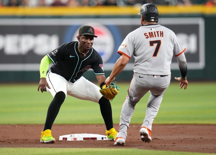 After a two-run double by Tyler Fitzgerald drew the Giants even at 2-2 in the top of the seventh, the Diamondbacks pushed across the eventual difference-maker in the bottom of the inning against San Francisco ace Logan Webb. Thomas and Jose Herrera hit consecutive one-out singles before Perdomo’s blooper over the head of shortstop Willy Adames.