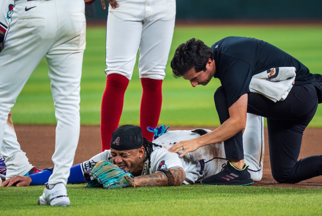 Marte remained down for a few seconds as a trainer and Lovullo attended to him. Marte was in visible pain as he stood up and gingerly retreated to the dugout amid MVP chants from the Arizona crowd.