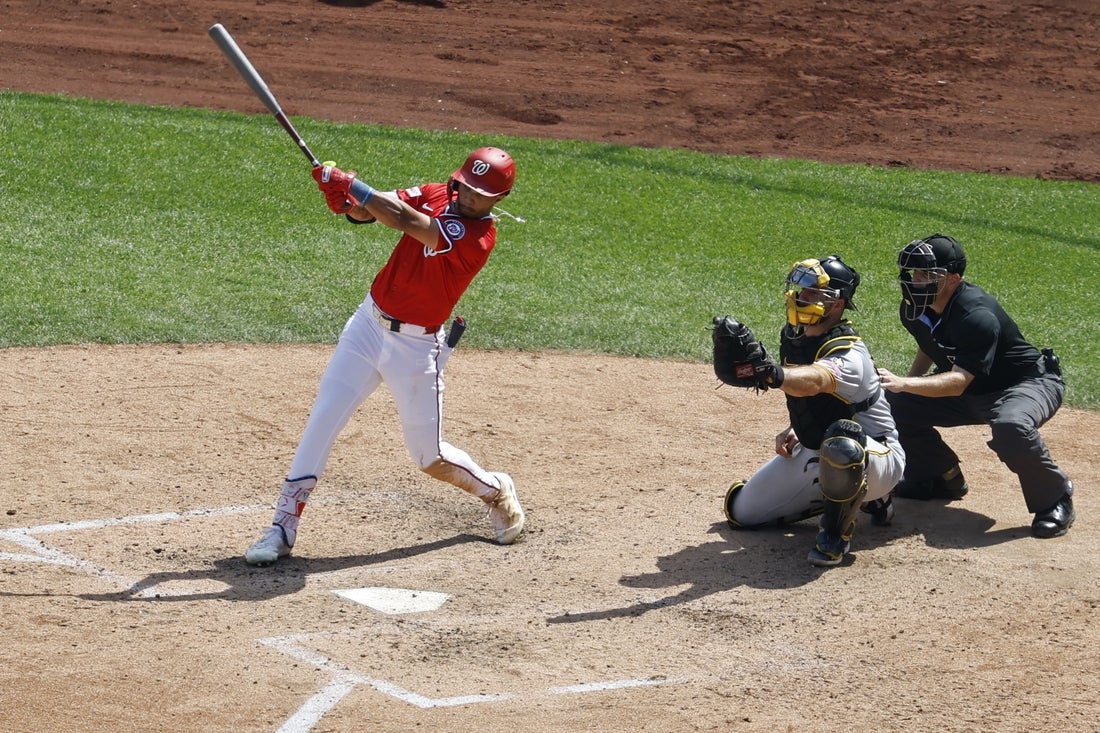 James Wood walked leading off the eighth against Isaac Mattson (3-3). With one out, Lile doubled to left center and when Pirates center fielder Oneil Cruz couldn’t cut the ball off, Wood came all the way around to score the go-ahead run.