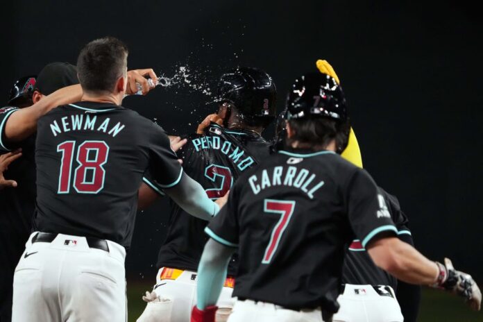 Perdomo then hit a fly ball down the left field line that was barely fair, and Carroll easily beat the throw from Daulton Varsho.