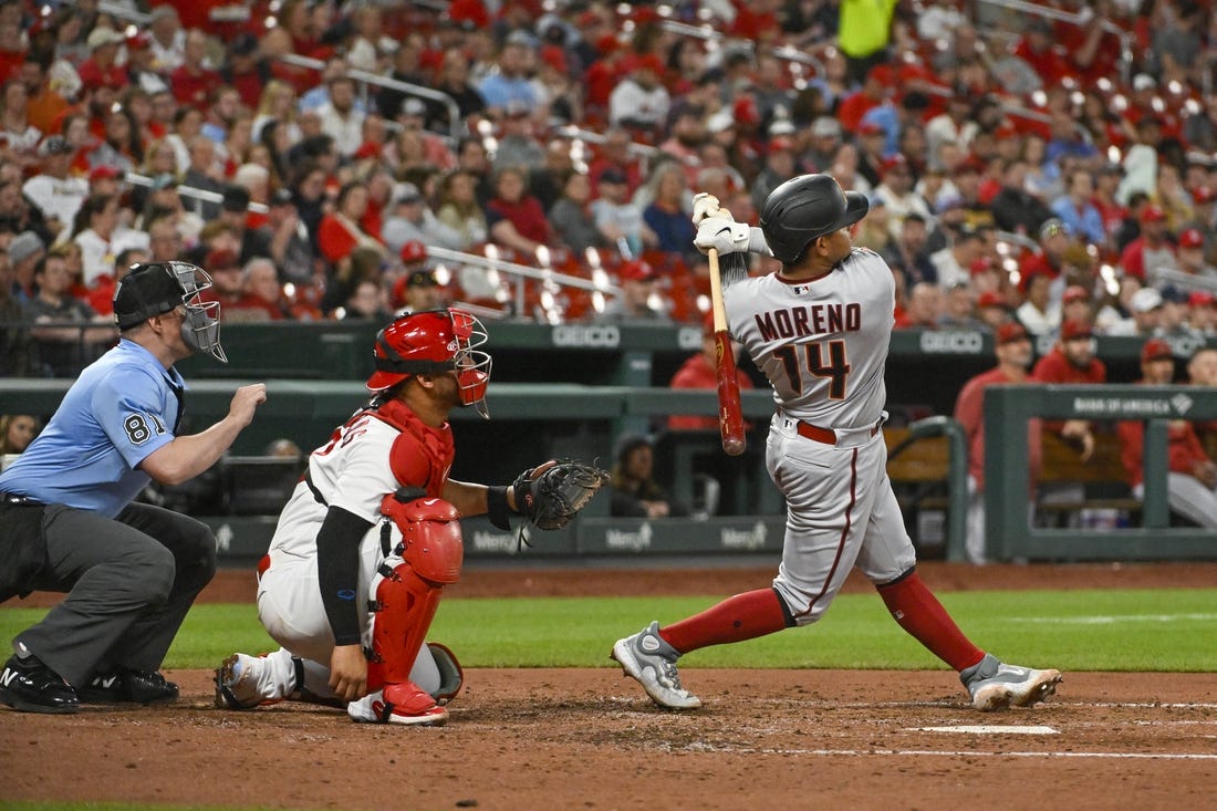 Arizona cut its deficit in half in the third inning as Moreno hit a double and scored on a single by Josh Rojas.