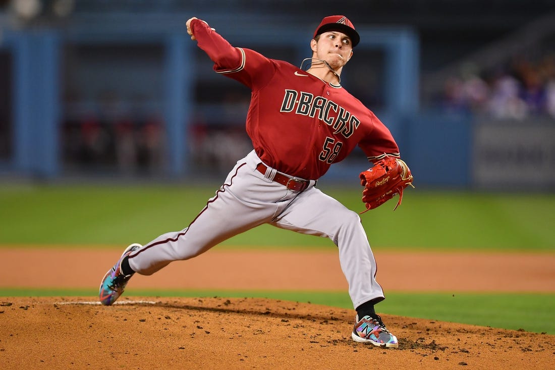 The Diamondbacks took a 1-0 lead in the second inning on a throwing error by Dodgers shortstop Trea Turner. With runners on first and second and two outs, Sergio Alcantara hit a ground ball between shortstop and third base. Turner fielded the ball, but his off-balance throw to get the forceout at second base went into right field, allowing a run to score.