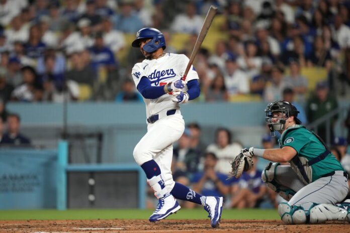 The Dodgers made it 3-1 in the fourth as Teoscar Hernandez led off with a single, stole second, took third on a wild pitch and jogged home on Will Smith’s sacrifice fly to center as Luke Raley crashed into the fence while making the catch and crumpled to the warning track.