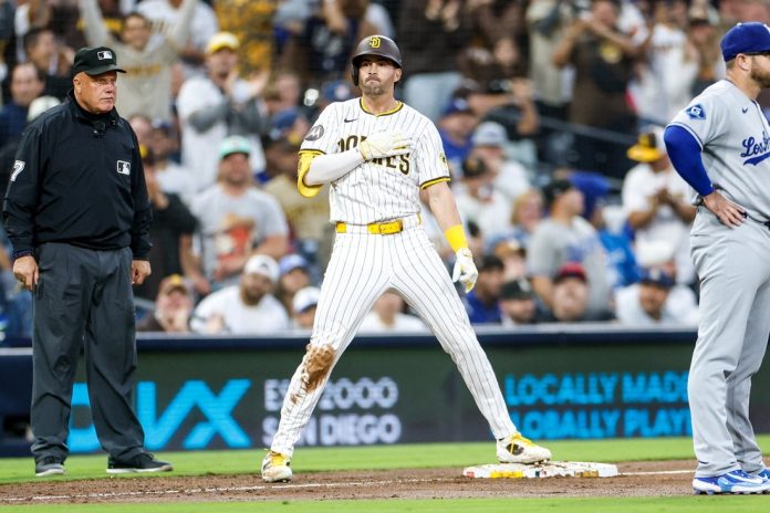 Neither starter was involved in the decision. Los Angeles’ Dustin May lasted five innings, permitting six hits and six runs, five earned, with four walks and a strikeout. San Diego’s Nick Pivetta pitched four innings and yielded five runs, four earned, off eight hits and two walks with three strikeouts.