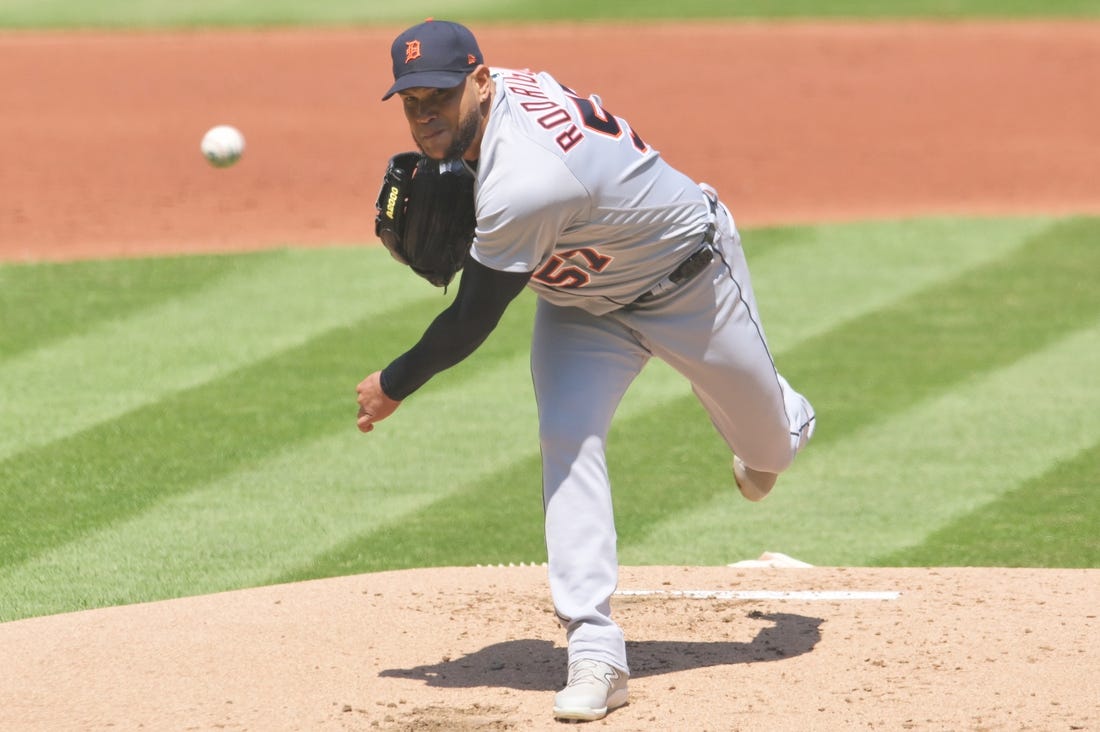 Eduardo Rodriguez scattered four hits across seven innings as the Detroit Tigers defeated the host Cleveland Guardians 5-0 on Wednesday afternoon in the rubber match of a three-game series.