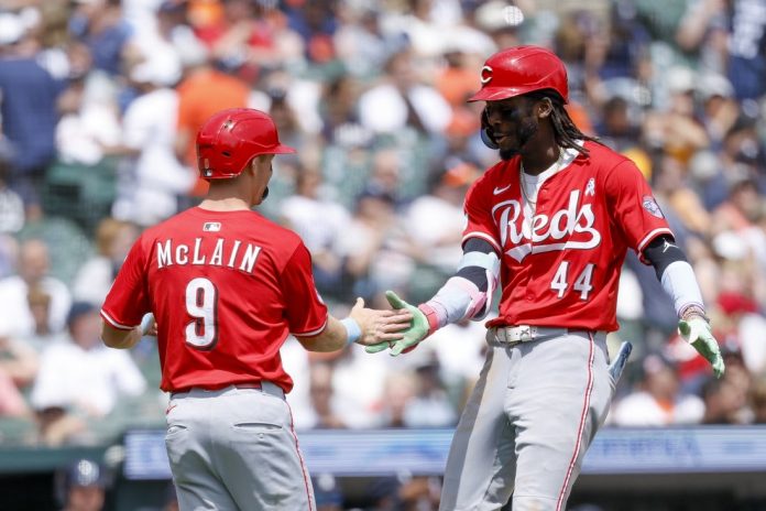 Elly De La Cruz homered for the fourth consecutive game and drove in three runs and the Cincinnati Reds rallied past the host Detroit Tigers, 8-4, on Sunday.