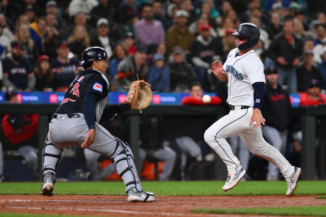 The Mariners scored a run in the fourth after loading the bases with one out on singles by Raleigh and France and a fielding error by first baseman Josh Naylor on Canzone’s grounder. The Guardians brought in Nick Sandlin, and he walked Luis Urias on a 3-2 count to force in a run before France was thrown out at the plate trying to score on J.P. Crawford’s flyout to center fielder Freeman.