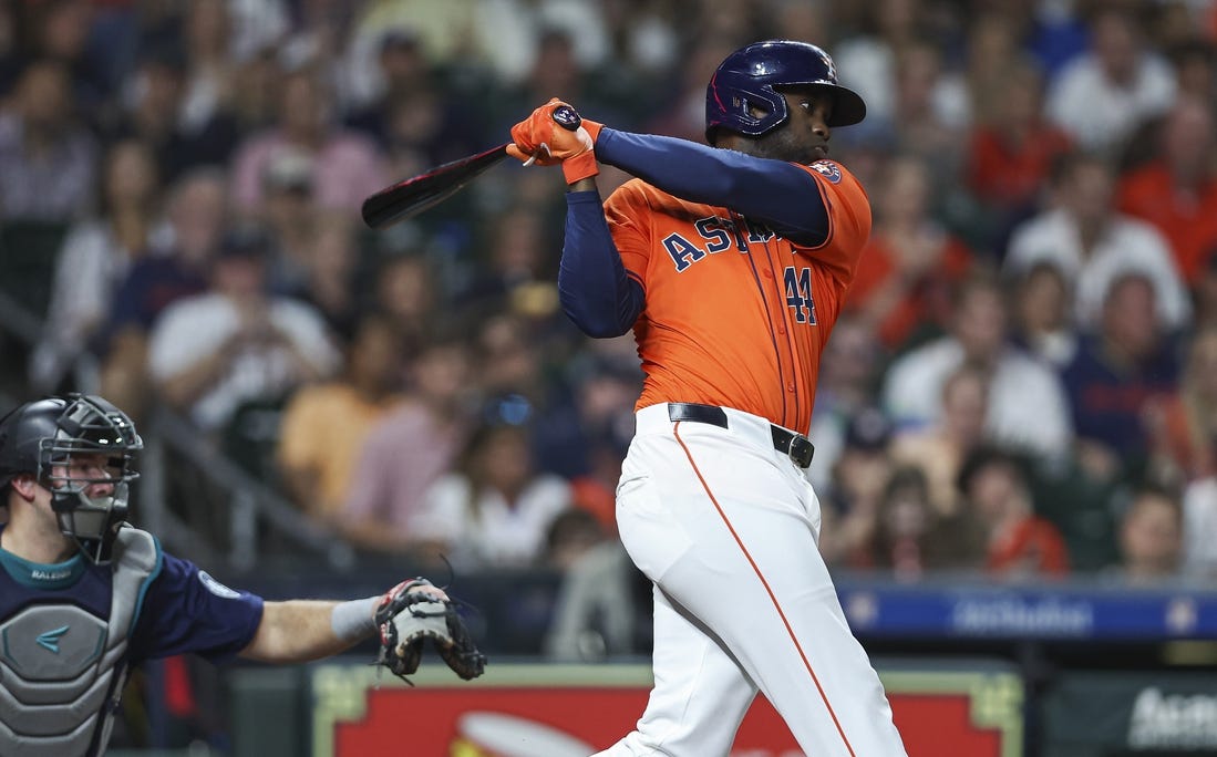 Pena worked a leadoff walk against Mariners reliever Trent Thornton, who then allowed a single to Yainer Diaz and a Jon Singleton groundout to the right side of the infield that advanced both runners into scoring position. After pinch hitter Jake Meyers worked a walk off Gabe Speier (0-1), Raleigh followed with his errant throw to third that eluded Josh Rojas and bounced into left field. Diaz advanced to third as Pena crossed home and scored the tying run.