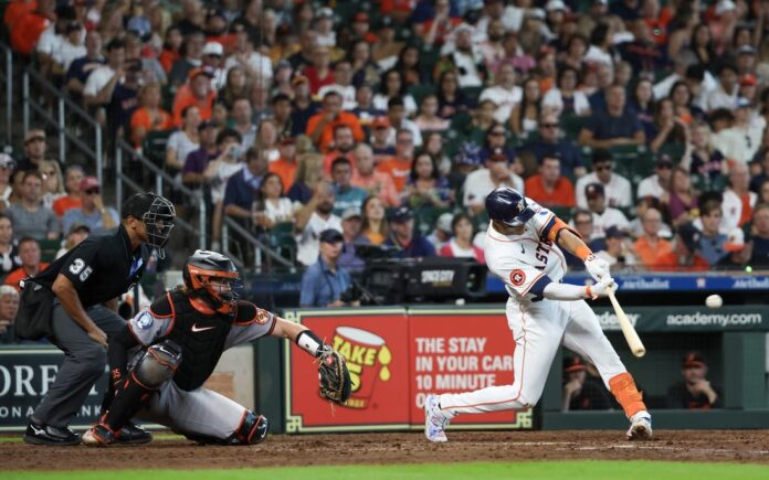 Jose Altuve ignited the Astros with his 38th career leadoff home run in the bottom of the first, driving a first-pitch fastball from Orioles starter Albert Suarez (3-2) out to left. The Astros produced six hits in the first, including doubles from Alex Bregman and Jeremy Pena, who was the second of three consecutive batters to produce run-scoring hits in the frame. Mauricio Dubon capped the surge with an RBI single that scored Pena and gave the Astros a 4-0 lead.