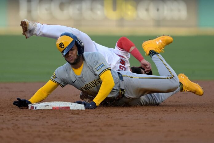 Freddy Peralta threw six scoreless innings and got just enough support from his offense in the Milwaukee Brewers’ 2-0 victory over the Los Angeles Angels on Wednesday night in Anaheim, Calif.