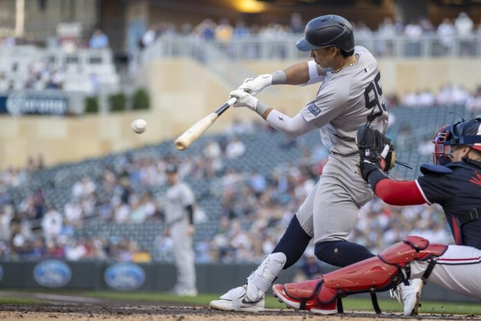 Alex Verdugo hit a two-run double for New York, which won the opener of the three-game series. Anthony Volpe finished 2-for-5 with a double and an RBI.