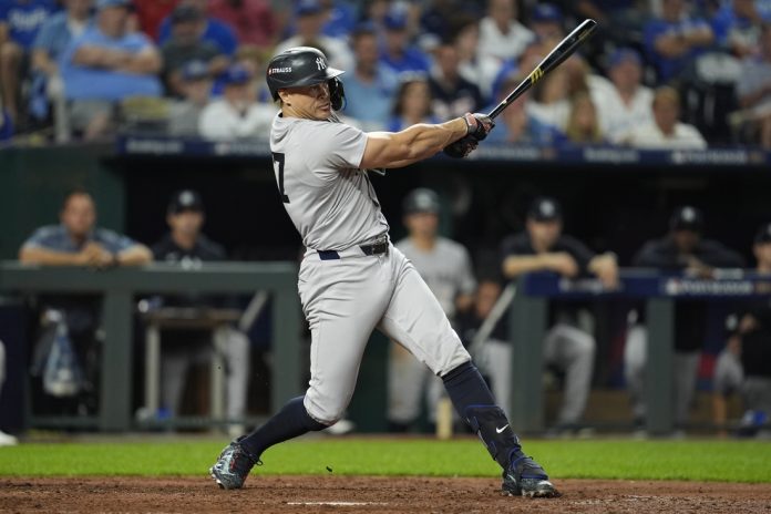 Stanton’s RBI double got the Yankees on the board against Royals starter Seth Lugo in the fourth, and Juan Soto hit a sacrifice fly for a 2-0 lead in the fifth.
