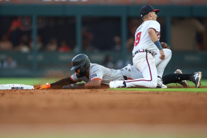 Nick Ahmed extended the Giants’ lead to 4-2 with a sacrifice fly in the eighth, but Atlanta cut the lead to one run in the bottom half of the inning on an RBI single by Ozzie Albies.