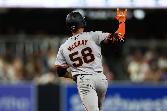 McCray put the Giants ahead for good an inning later, unloading a no-doubt homer to right field that soared an estimated 417 feet and traveled about halfway into the lower deck. Two innings later, his double-play grounder scored Patrick Bailey for a 4-2 advantage.