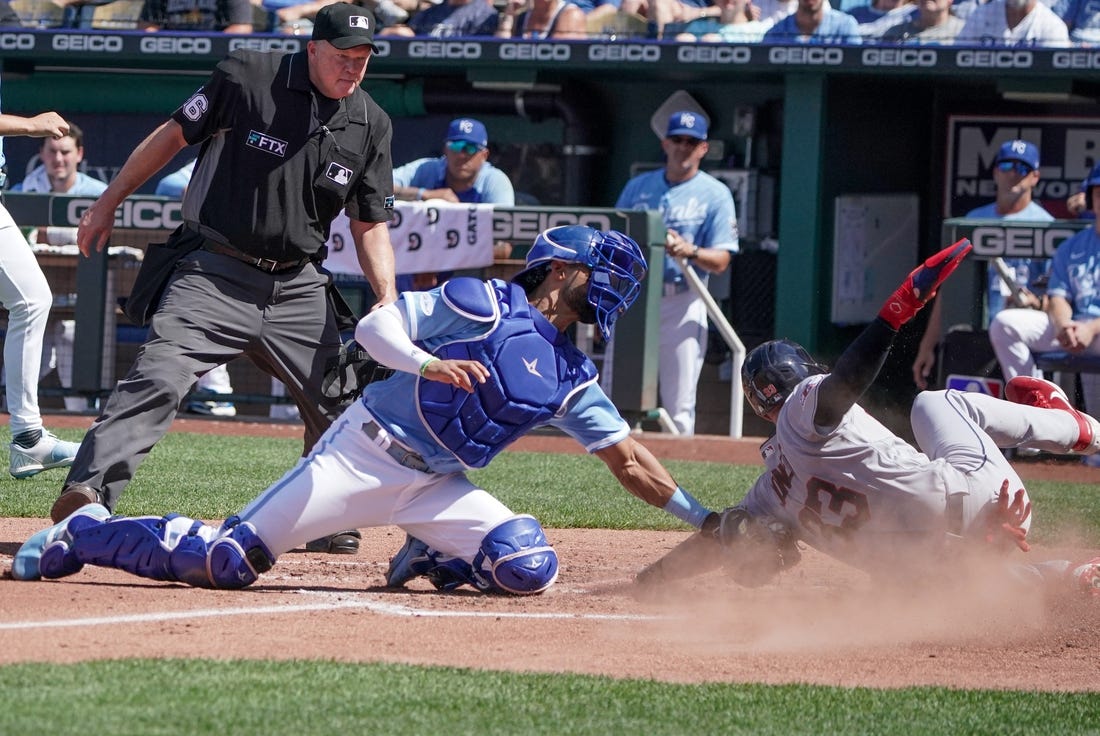 Losing pitcher Jonathan Heasley (1-5) allowed six runs (five earned) on six hits in 1 1/3 innings. Outfielder Michael A. Taylor pitched the last two innings for KC.